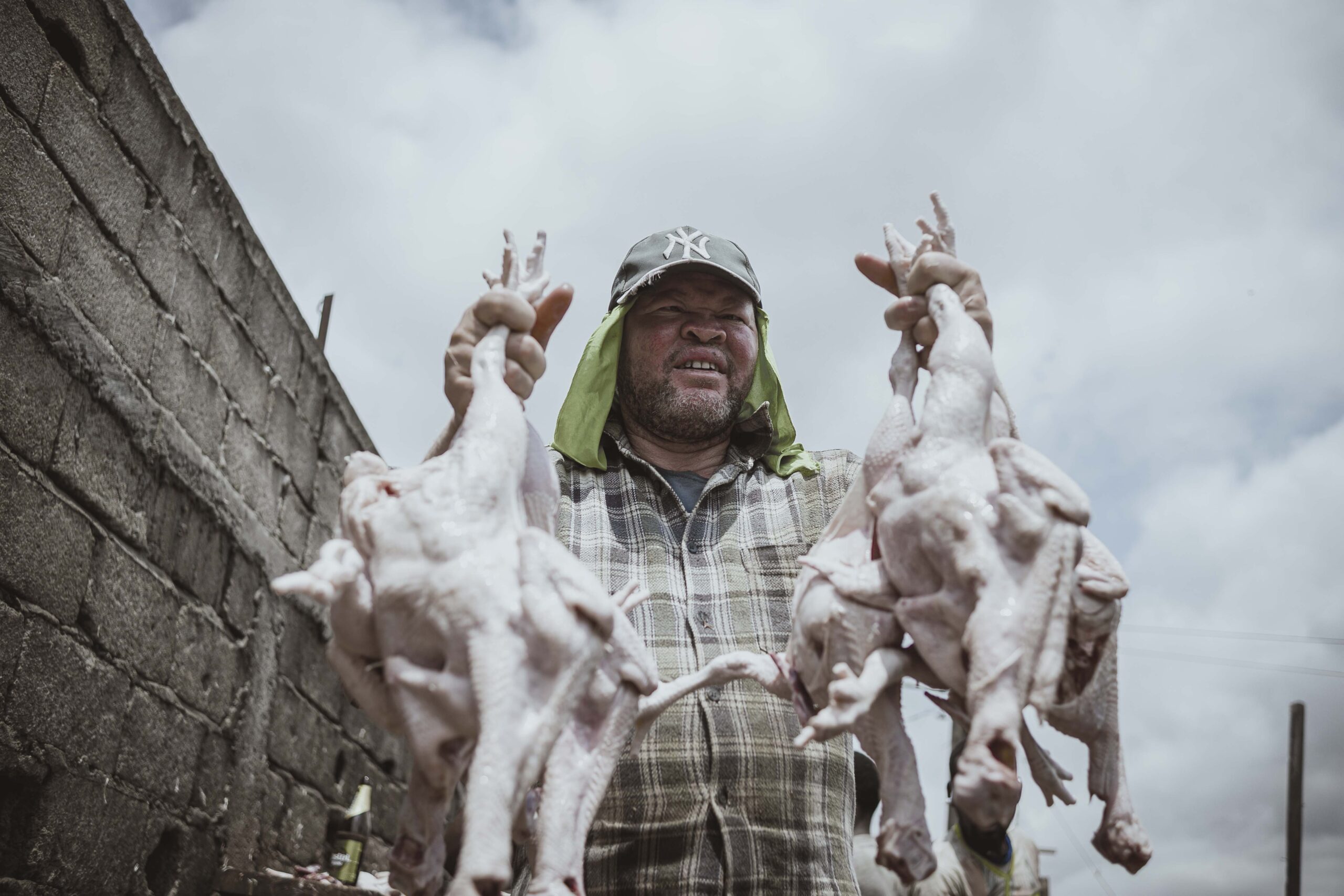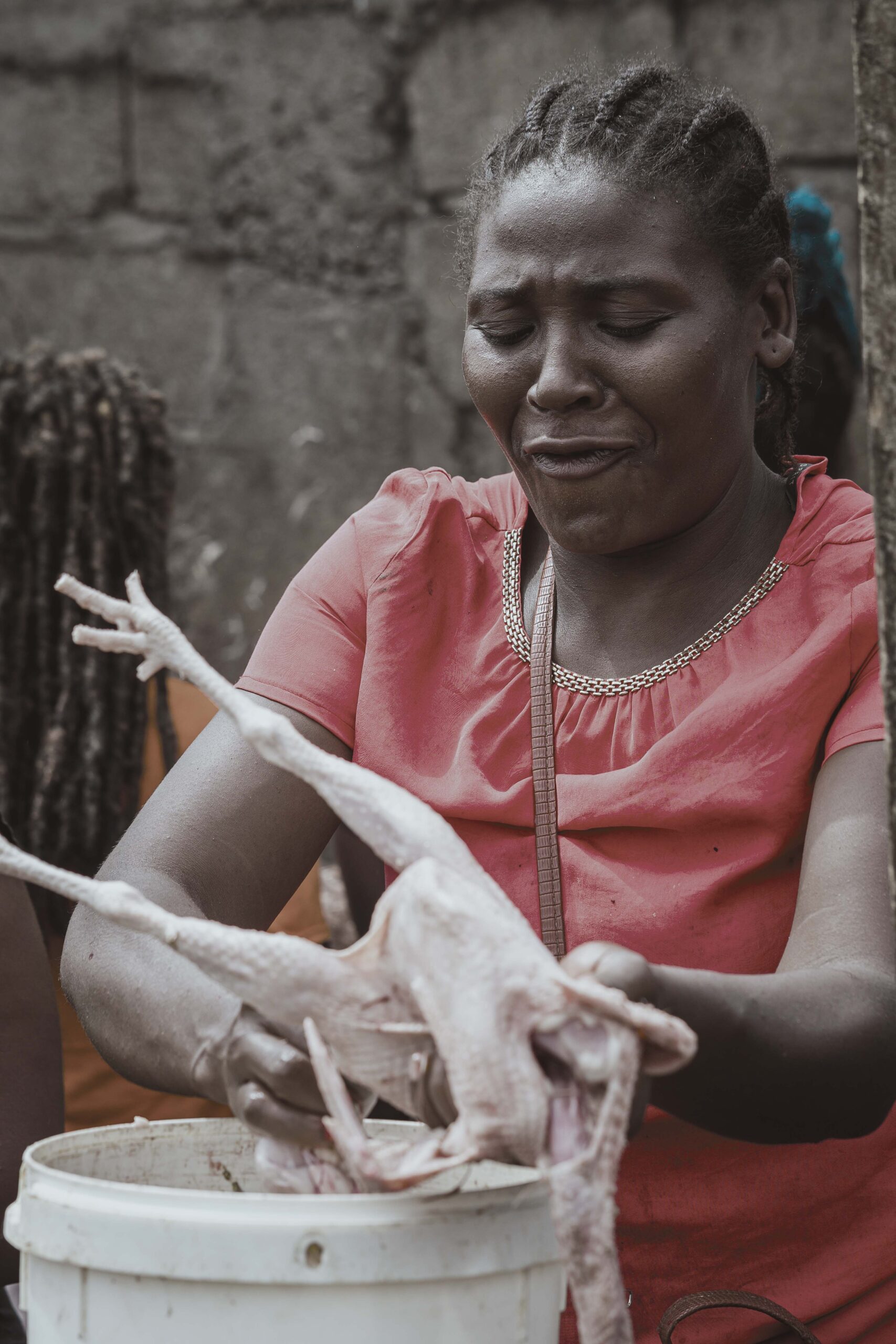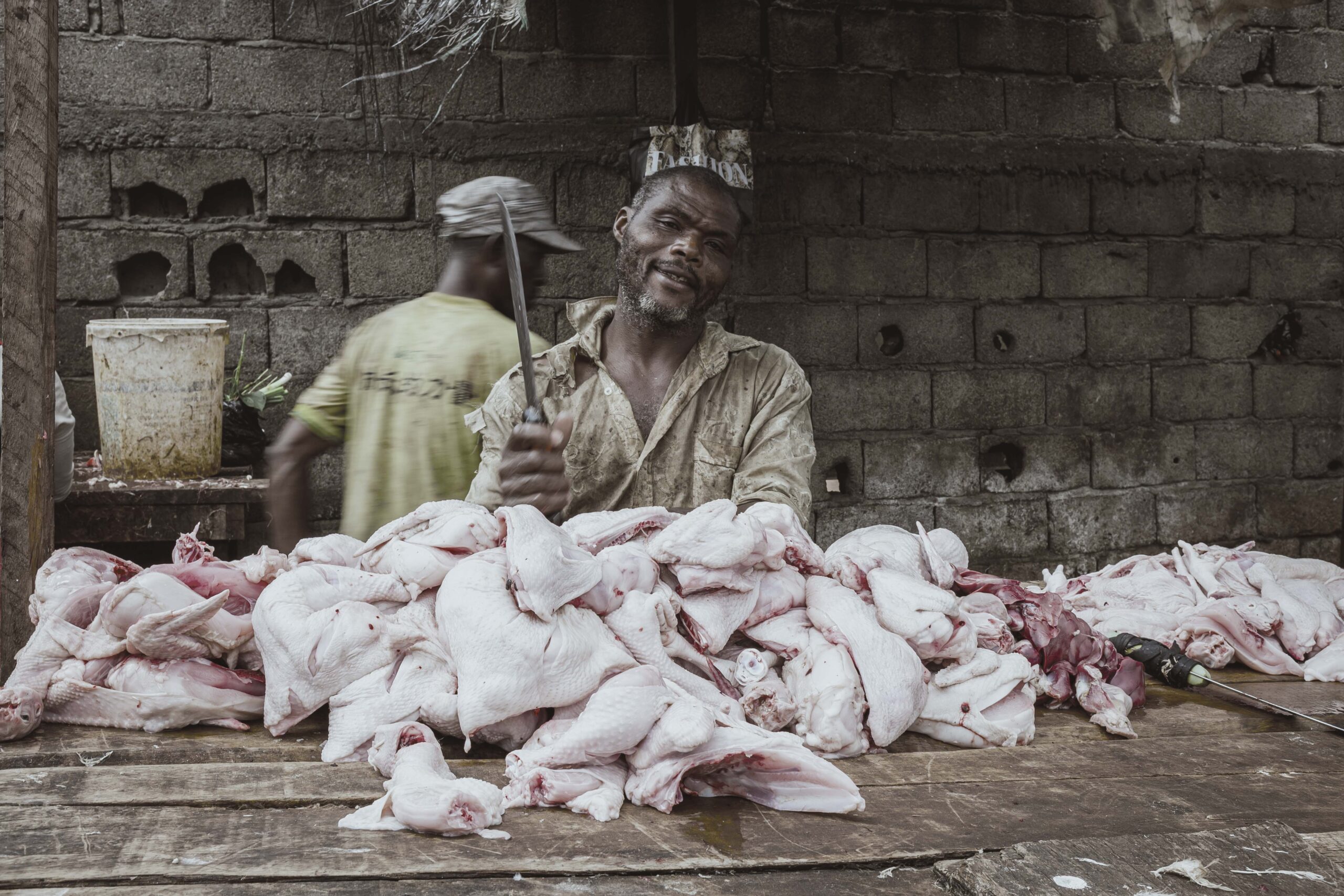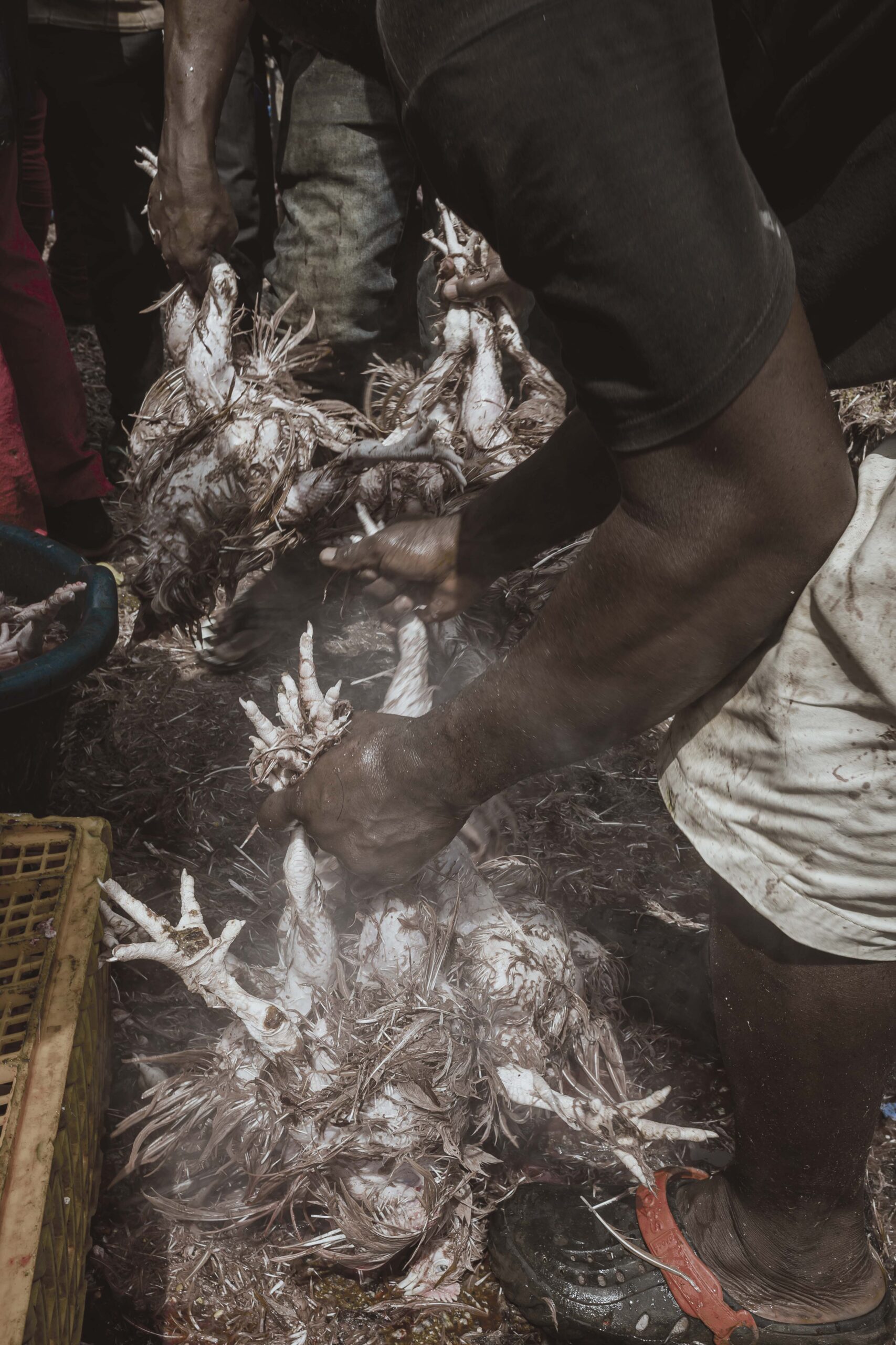 Il y a des lieux où l’humanité se révèle dans sa plus grande simplicité, dans ces gestes répétés chaque jour, dans ces tâches banales, mais portant en elles une histoire. À Mvog-Ada, au cœur battant de Yaoundé, se déroule chaque jour une chorégraphie silencieuse, celle des déplumeurs de poulets. « Kata-Kata », cette expression qui résonne comme un bruit de lames dans l’air, signifie littéralement « l’action de couper ». Elle devient le fil conducteur de cette série photographique, une exploration profonde de ce que signifie être humain dans un monde où les gestes répétés s’accompagnent d’un fardeau invisible.